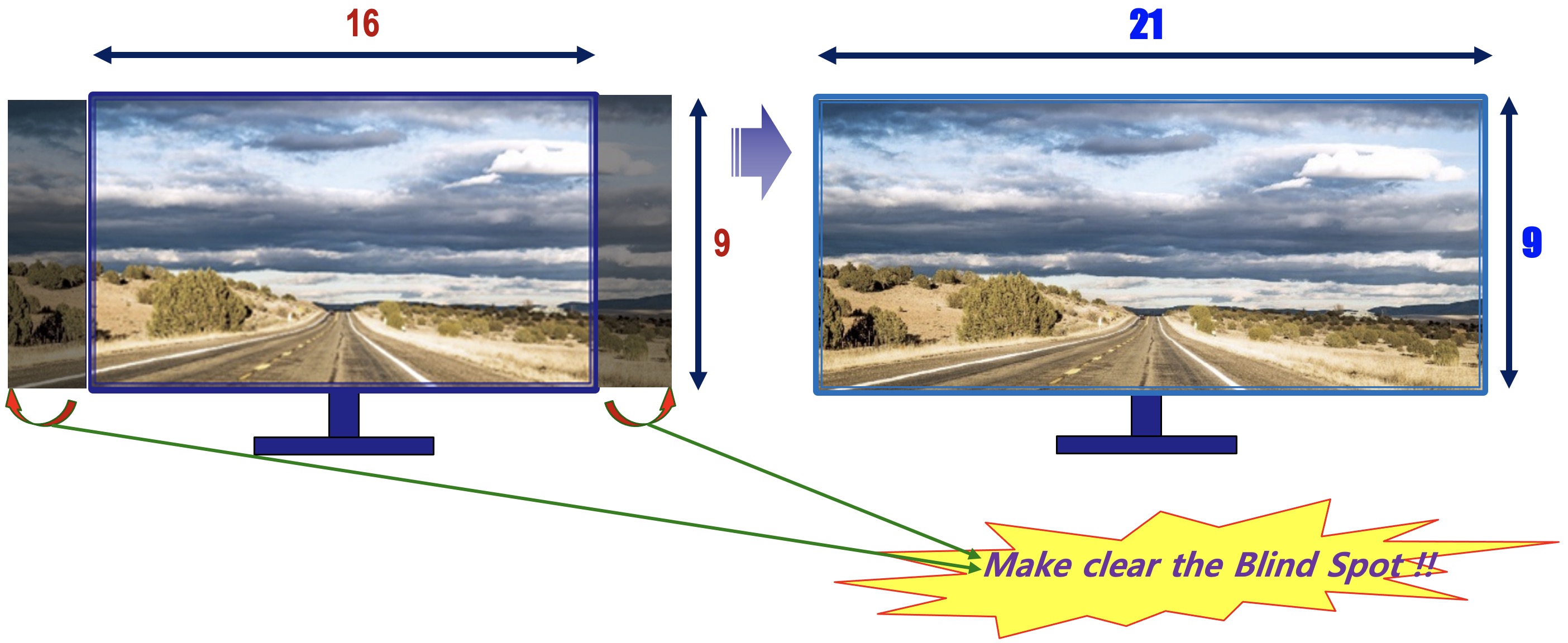 By 21:9 Wide View resolution, It’s possible to take more surveillance of hide region!!